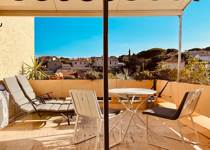 Enhance your stay with Studio Avec Terrasse Sud Proche Bord De Mer's an equipped kitchen, furnished with a fridge, a cooktop, and glassware for your comfort. Hyeres airport is at a 58-minute driving distance, and La Palmeraie bus stop is steps away from Studio Avec Terrasse Sud Proche Bord De Mer.