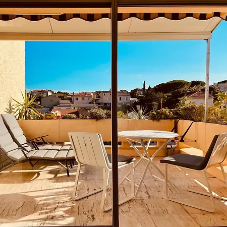 Pour votre confort, la propriété Studio avec terrasse sud proche bord de mer comprend une cuisine équipée avec une bouilloire électrique, un réfrigérateur et de la vaisselle fournis. L'aéroport de Toulon-Hyères est situé à 55 km, tandis que l'arrêt de bus La Palmeraie est assez proche de l'appartement.